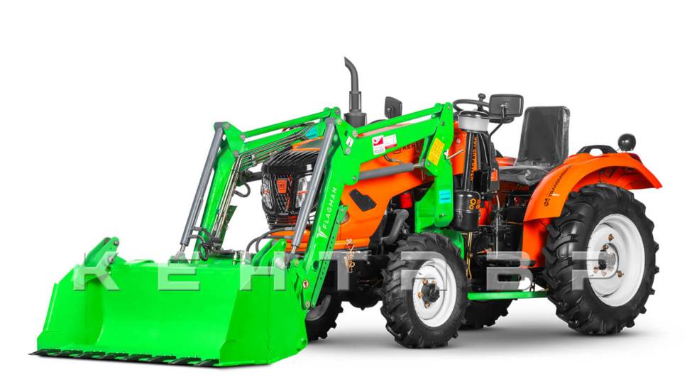 Запас прочности погрузчика позволяет с легкостью поднимать 750 кг, но гидрораспределитель отрегулирован заводом-производителем на нагрузку не более 500 кг из-за невысокого веса тракторов. Благодаря европейским гидроцилиндрам скорость работы погрузчика Flagman значительно превосходит конкурентов.