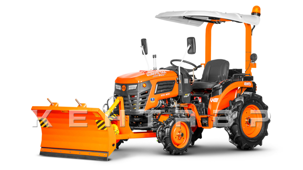 Отвал монтируется на трактора Kubota T-4K и Kubota T-344 в средней части остова, а также спереди – в месте крепления утяжелителей. Благодаря такому решению нагрузка распределяется равномерно, исключая деформацию передней рамки трактора и рамы отвала.